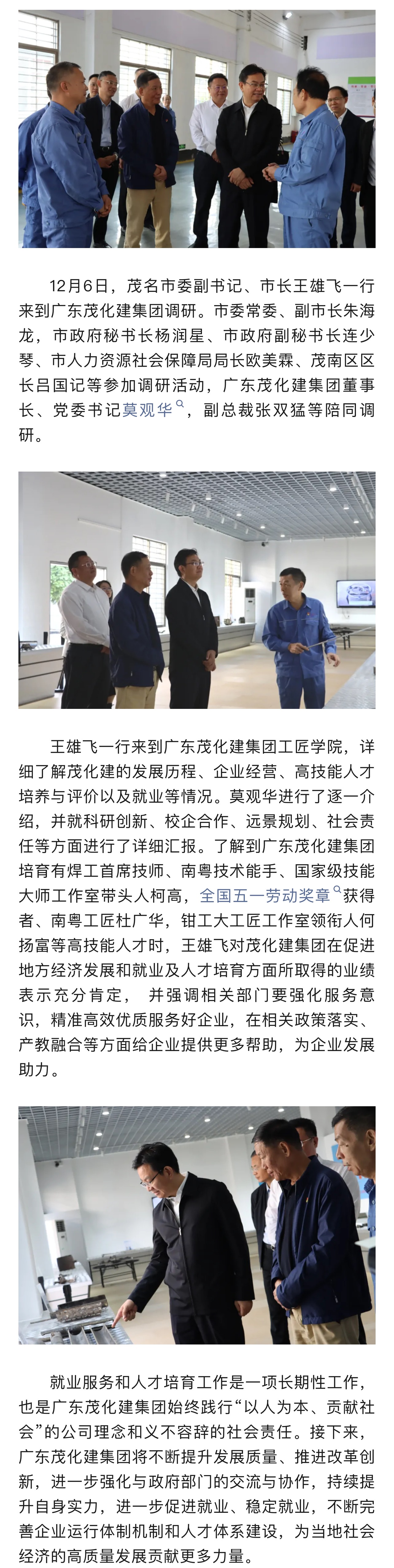 茂名市委副書記、市長王雄飛到廣東茂化建集團(tuán)視察指導(dǎo)工作