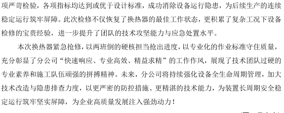湛江分公司中科項(xiàng)目部換熱器搶修紀(jì)實(shí)