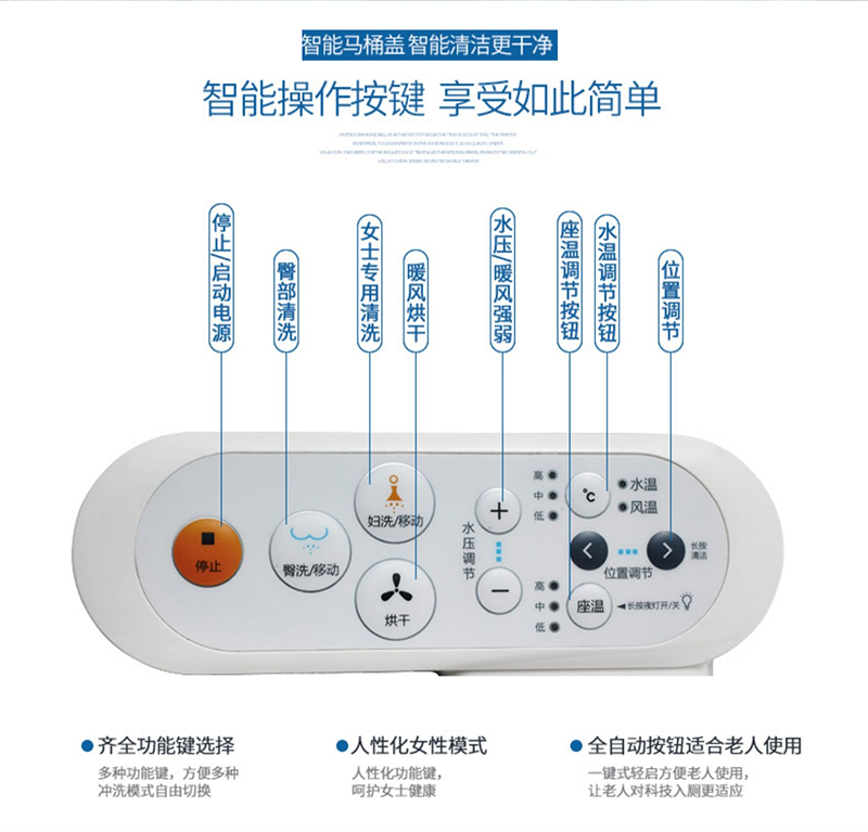 6、 女性洗凈:專為女性日常衛(wèi)生而設(shè)計(jì),由女性專用噴嘴噴出溫水,精心清洗,防止細(xì)菌感染;